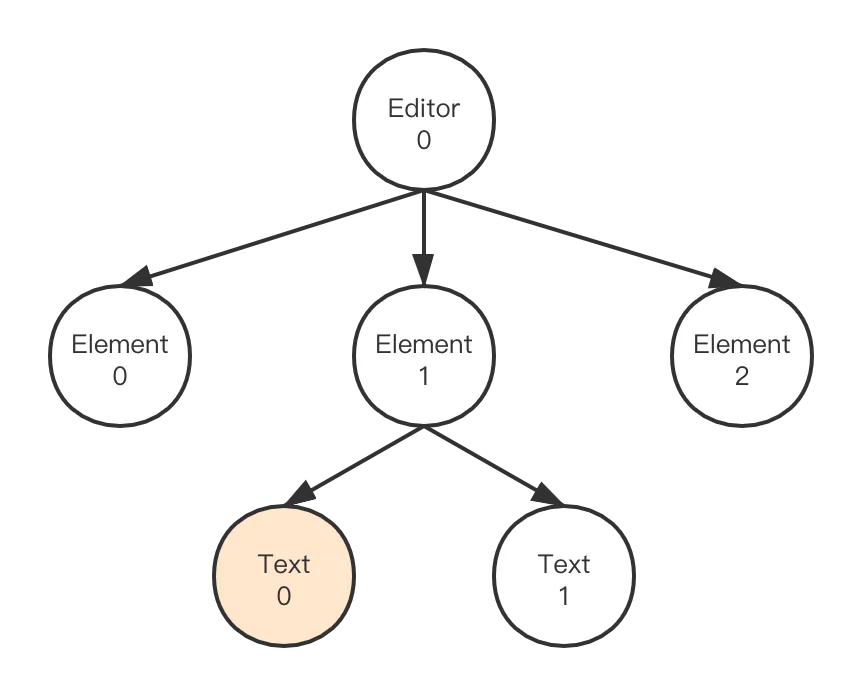 例如下例中的 Text 节点的 path 是 [0, 1, 0],然后假设 Text 节点的内容是 123,那么其中 2 的 offset 就是 1。