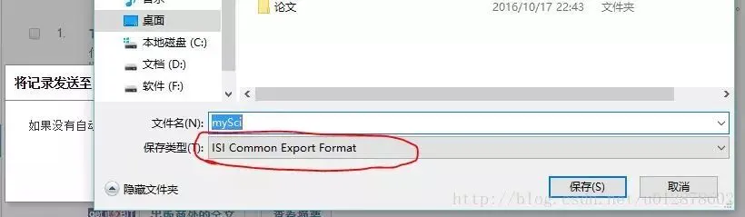 这里我们需要注意一下保存类型,SCI的类型为ISI,不同检索网站一般是不同的类型。这个我们之后在导入的时候需要匹配类型。