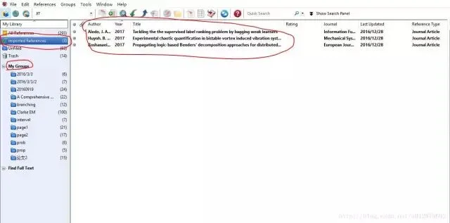 (2) 之后在Endnote里面就可以看到相应的文献导入了。然后我们还可以建立Group将导入的文献放到Group里面方便管理。
