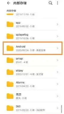 3、打开手机【内部存储】,找到【Android】并打开。