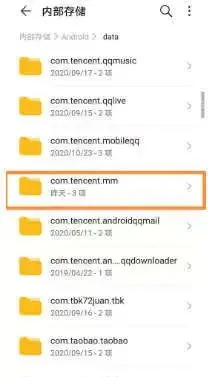 5、找到【com.tencent.mm】并打开。