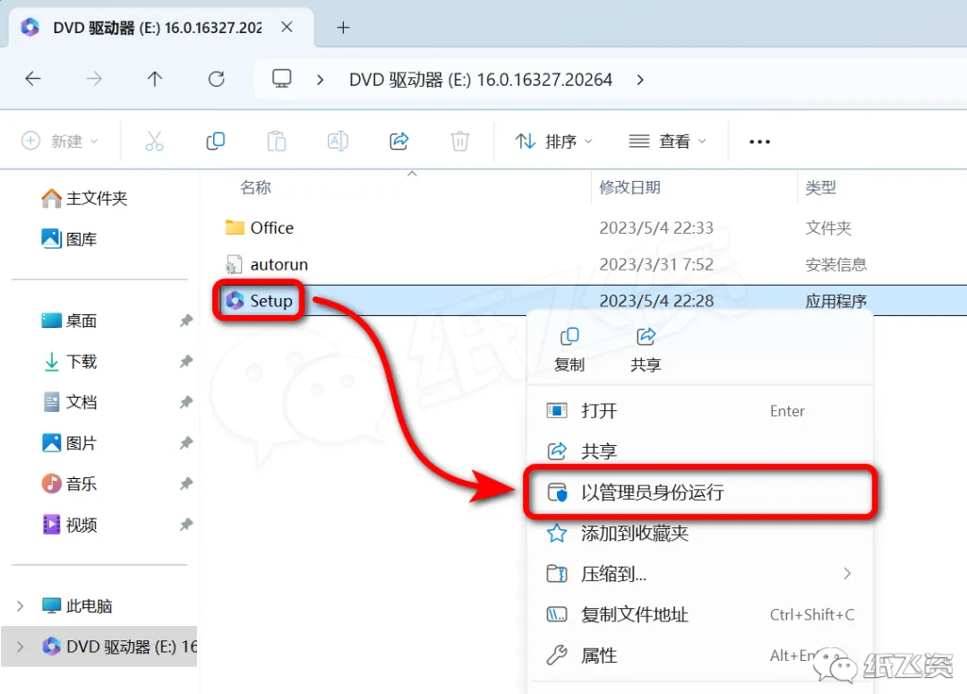 4.右击[setup]选择[以管理员身份运行]