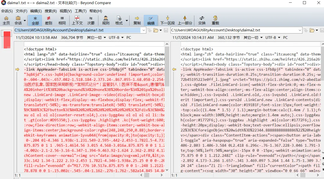 今天给大家介绍一款超好用的数据对比软件——Beyond Compare,有时候我们需要对比两个表格或文档,找出其中做了哪些修改,如果靠肉眼去看就会特别麻烦,效率也很低,用这款软件就能轻松解决这个问题。