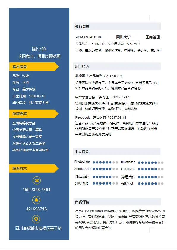 个人简历部分预览