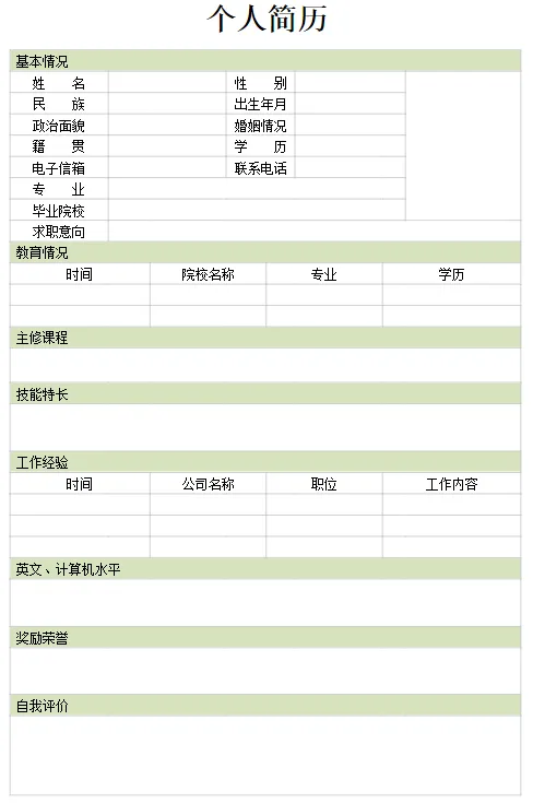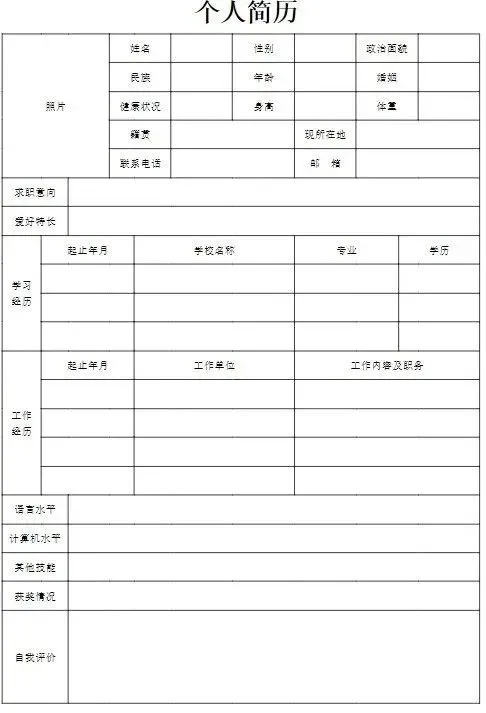 空白个人简历部分预览