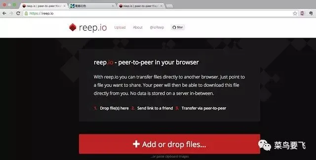 Reep.io 是一个直接利用网页,在不需登录、不需安装的情况下,就能通过 P2P 在两个人之间直接传送超大文件的服务,它的界面更美观,传输速度也很快。