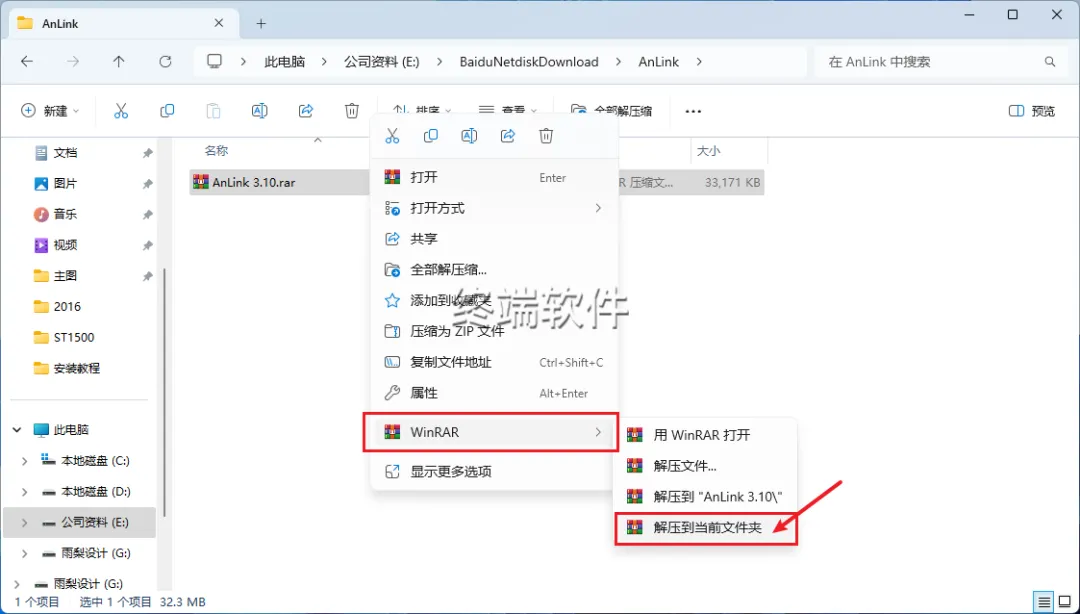 1.右键下载的压缩包,并【解压到当前文件夹】