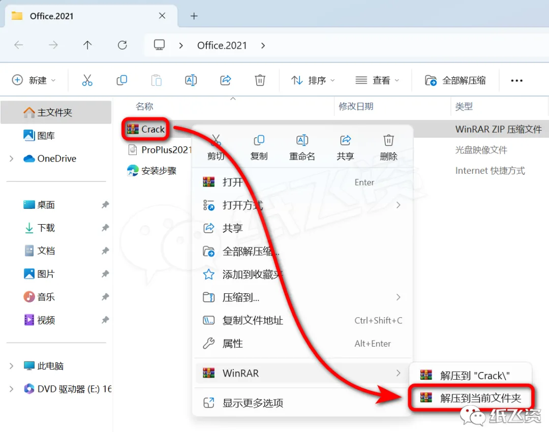 7.右击[Crack]选择[解压到当前文件夹]