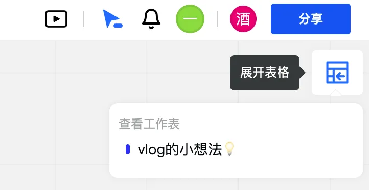 Fabrie 拥有很多有趣且实用的特性,它除了可以被当成一个在线白板,在上面填充内容之外,还可以是一张维格表,有数据处理的能力(每一个Fabrie白板的右侧都自带智能表格)!