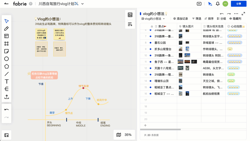 你可以用Fabrie做头脑风暴、做市场调研、做素材整理、做计划清单、做价格核算表、做项目管理…… 来看看具体的操作!