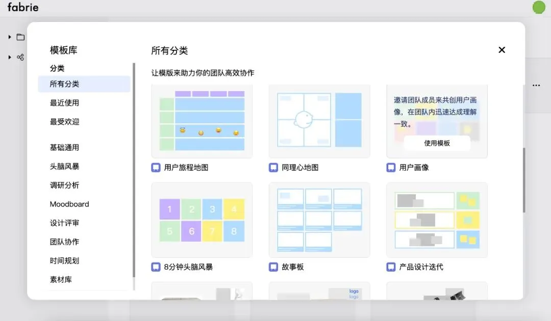 Fabrie 也有丰富的素材库,在你第一次使用不知道怎么上手的时候,这个模板库能带来很多灵感。