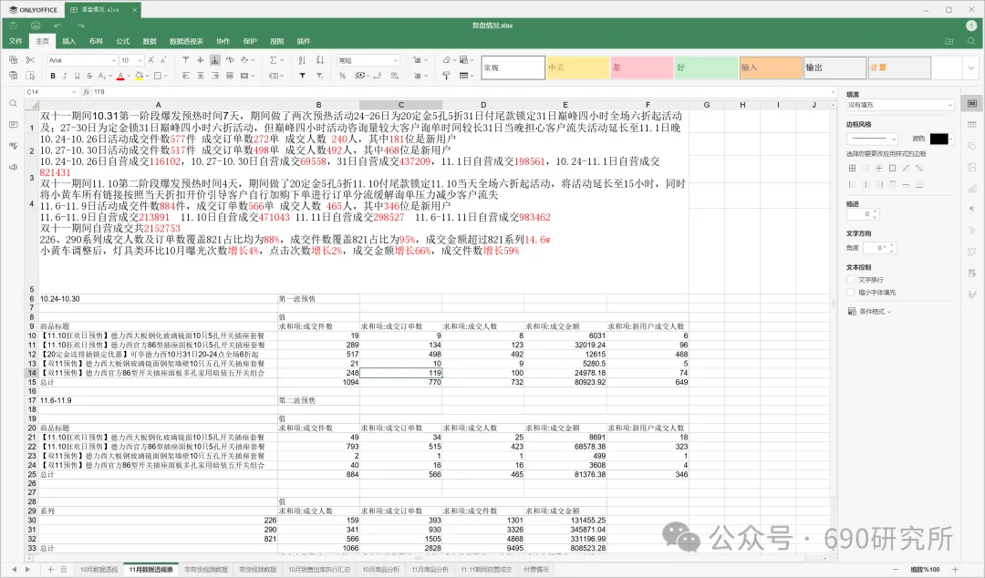 此前这个文档是我女朋友在她的macbook笔记本上使用WPS软件创建并编辑的,现在将其分享给我,并在Windows电脑上使用ONLYOFFICE打开并进行编辑也没有出现任何的错误以及乱码的情况。文档中的各种数据透视表等等都是完全正常使用的。