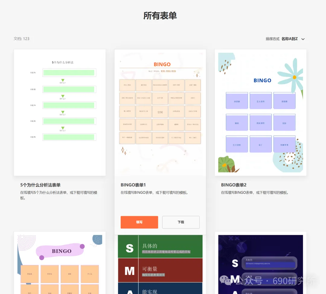 整个模板库内的模板文件虽然不是很多,只有123个,但是包含的类型还是挺多的,像什么食谱表单,婚礼表单等等。