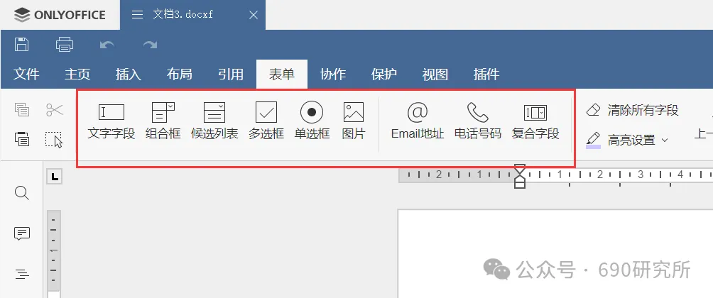 当然,如果你说模板库里面的这些模板你都不喜欢,没关系,你也可以在表单模板里面建立自己喜欢的表单。操作也很简单。编辑表单就像文本文件一样,只是ONLYOFFICE为你提供了填充框、多选、单选等等各种方便的按钮,这样就不用用户自己新建了。