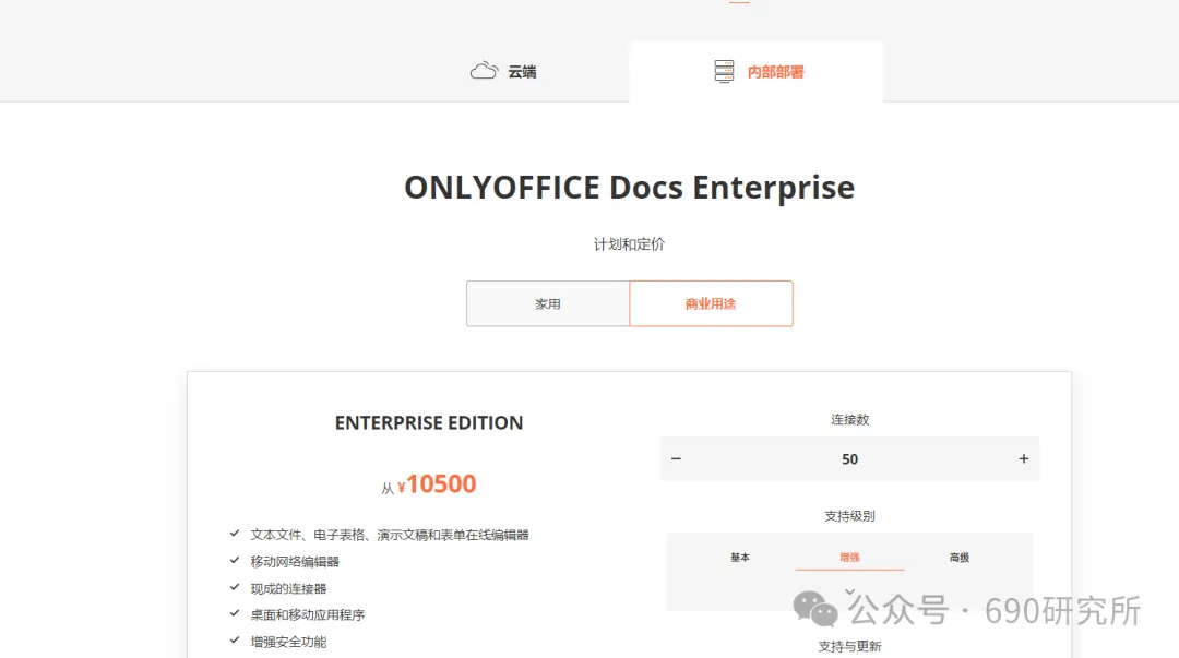 当然如果你是企业用户的话,ONLYOFFICE还贴心的提供了企业云,在企业套餐内可以根据团队的实际情况购买适合你的套餐。