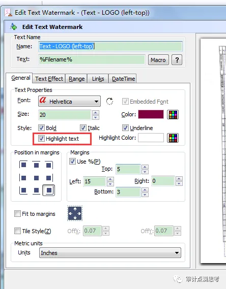 最开始的时候利用A-pdf watermark添加了PDF文件名的时候感觉非常的好,但是有一个不好的地方,就是添加的文件名有时候被文件本身的内容给融为一体,看不清楚这个文件名了,所以有的人处理是把字体放大一点就可以了,但是字体太大就有点丑,正确的处理方式是高亮highlight。