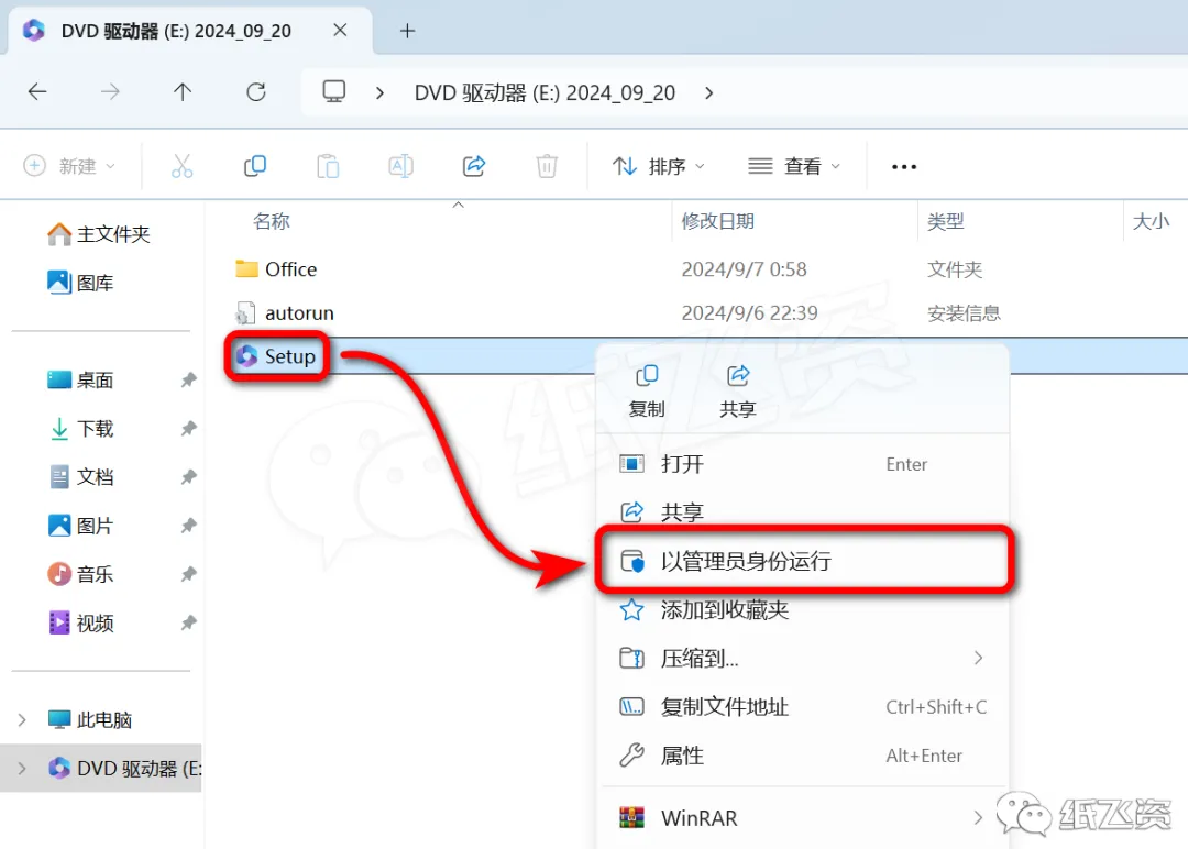 4.右击[setup]选择[以管理员身份运行]