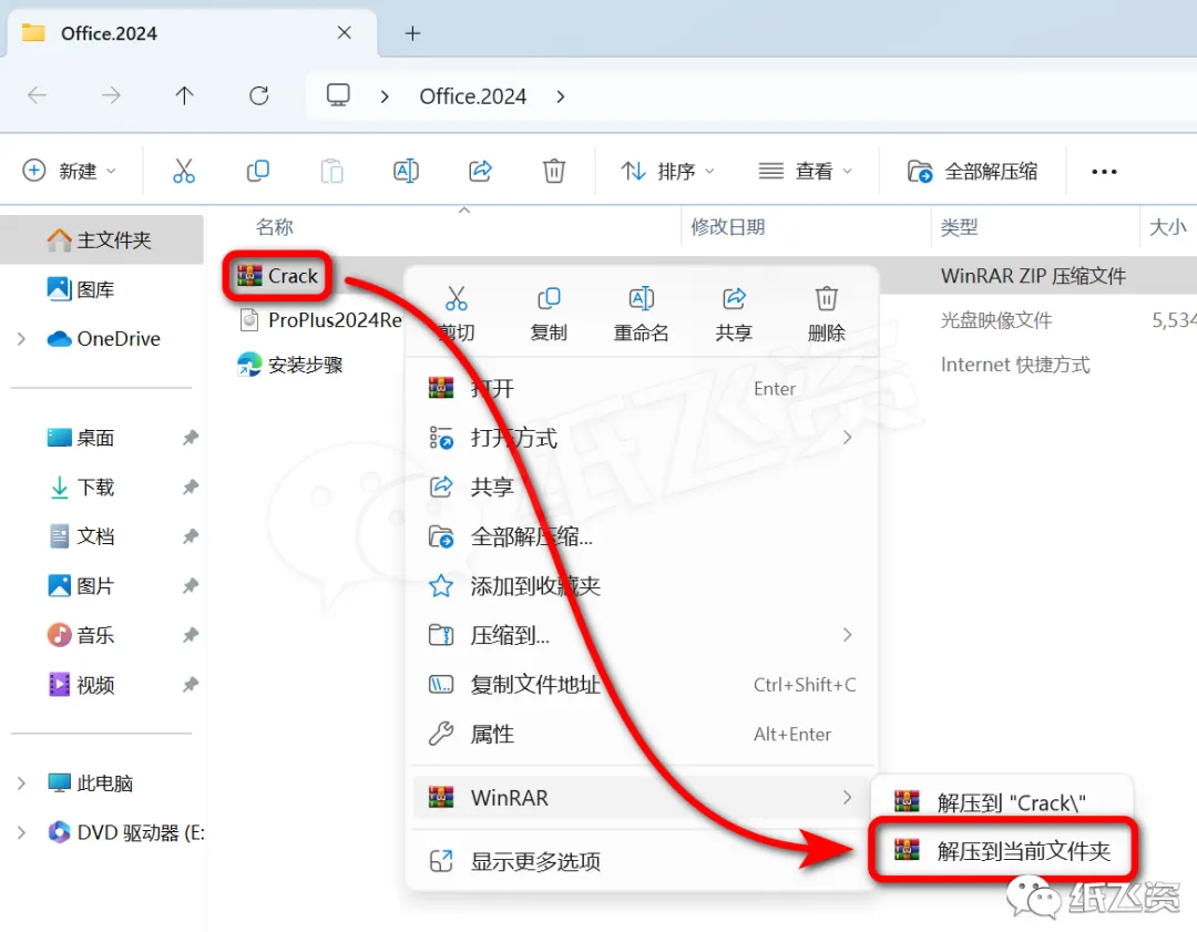 7.右击[Crack]选择[解压到当前文件夹]