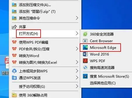第一步:先在桌面上右键需要操作的PDF文件,用【打开方式】里面的【Microsoft Edge】打开文件,进入浏览器内。