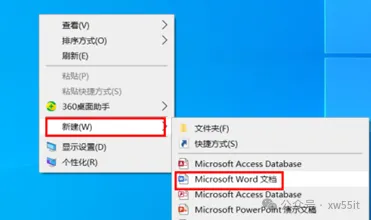 7、在桌面空白处鼠标右键点击,选择新建“Microsoft Word文档”。