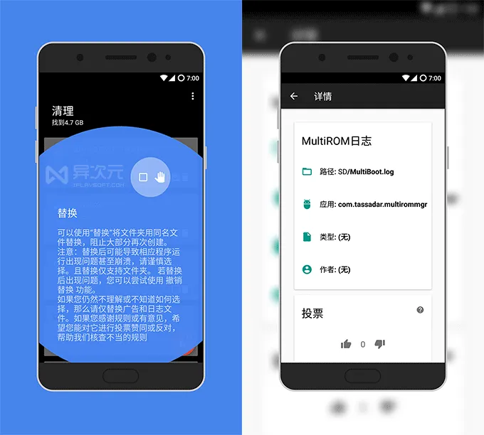 而且 Dir 阻止流氓 APP 生成垃圾的原理也很简单很透明,就是文件替换目录大法,完全不用担心 Dir 本身会对系统造稳定性成什么影响,由「规则」驱动的有针对性的清理也更加干净彻底不易出错。如果你也不能忍受流氓软件随意生成垃圾的行为,不妨试试 Dir 这款 Android 垃圾文件清理利器吧。