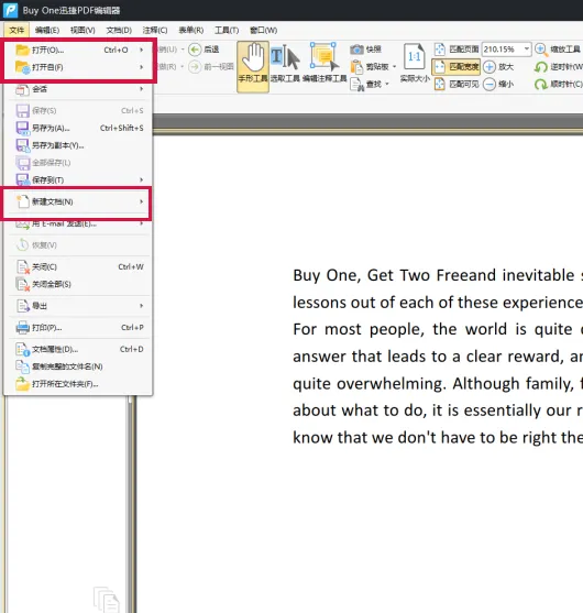 启动软件,点击界面的【文件】打开已有的PDF文档或者新建一个PDF文档;
