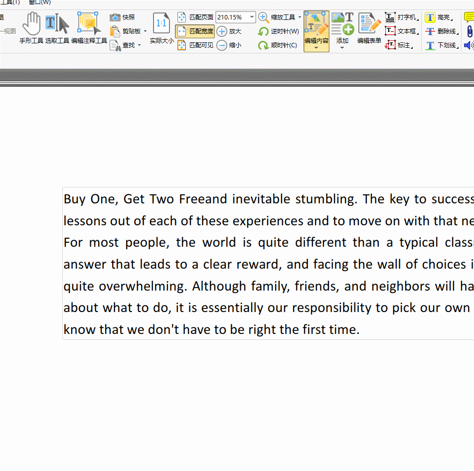 点击界面的【编辑内容】即可进行编辑操作,这里有【仅文本】【仅图像】【仅形状】【全部内容】四个版块可选择,分版块选择有利于提高编辑效率;
