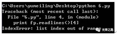 我们用坐标就可以取列表中的某个坐标的值。如果坐标取值范围超过列表本身的长度,则会报错越界,如下面我文件只有3行我却取坐标为4即第行的数据,就会报索引越界。