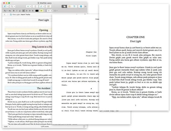 Scrivener 属于重量级选手,功能更加专业丰富,是倍受国外作家小说家推荐的一款软件。我们先来看看它的界面: