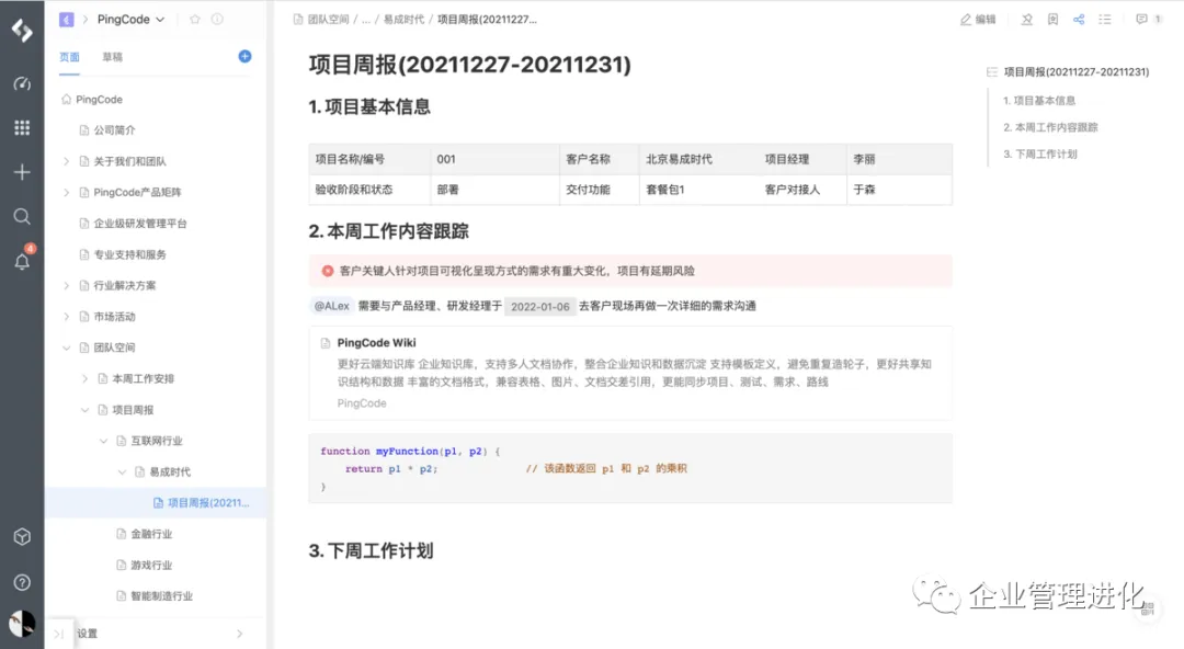 公司打造,在国内算是比较知名的的企业知识管理与协同软件,与国内的PingCode知识管理子产品类似,可以用于构建企业wiki,具有成熟的功能,能够直接关联研发管理的各环节。