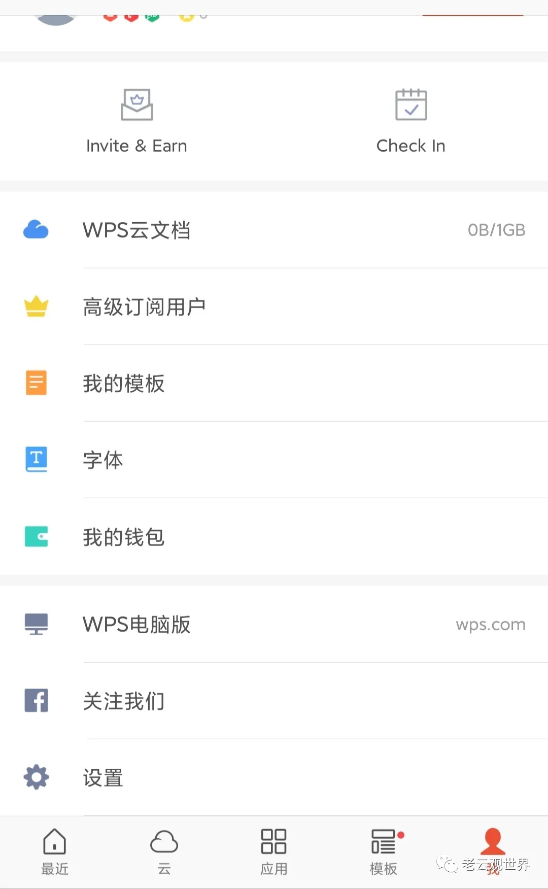 关注微信公众号:老云观世界 后台回复“wps国际版”即可免费获取!
