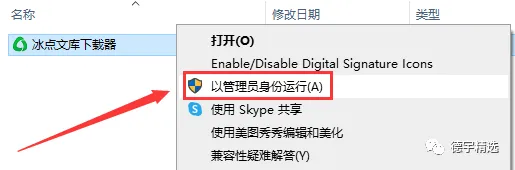 第三步:右键点击【冰点文库下载器】弹出框点击【以管理员身份运行】