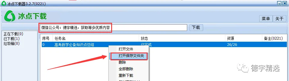 第七步:右键点击该下载文件,弹出框点击【打开保持文件夹】