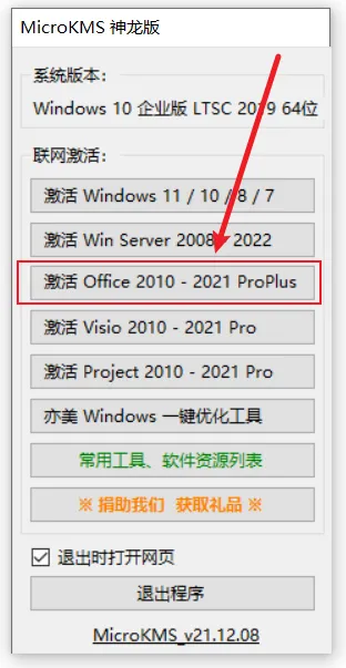 2、在激活工具界面上点击【激活office2010-2021 Proplus】选项;