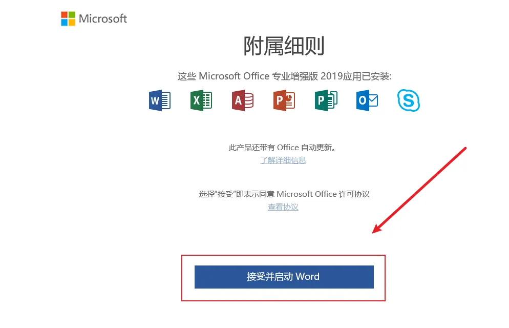 6、弹出下方界面,点击【接受并启动Word】即可;