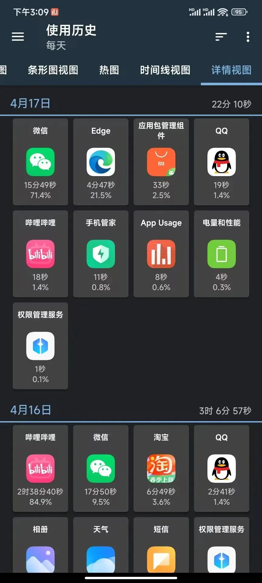 虽然现在的安卓手机基本都自带了可以查看应用使用时长,但可能不太详细。如果你有具体时间需求,可以用这款「App Usage」应用,支持记录手机历史、应用使用历史、通知历史、 电池记录、 过度使用提醒、应用管理、应用追踪等。