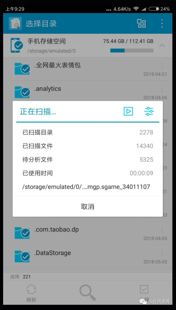 等待扫描文件,文件多的话可能时间也比较长,请耐心等待。