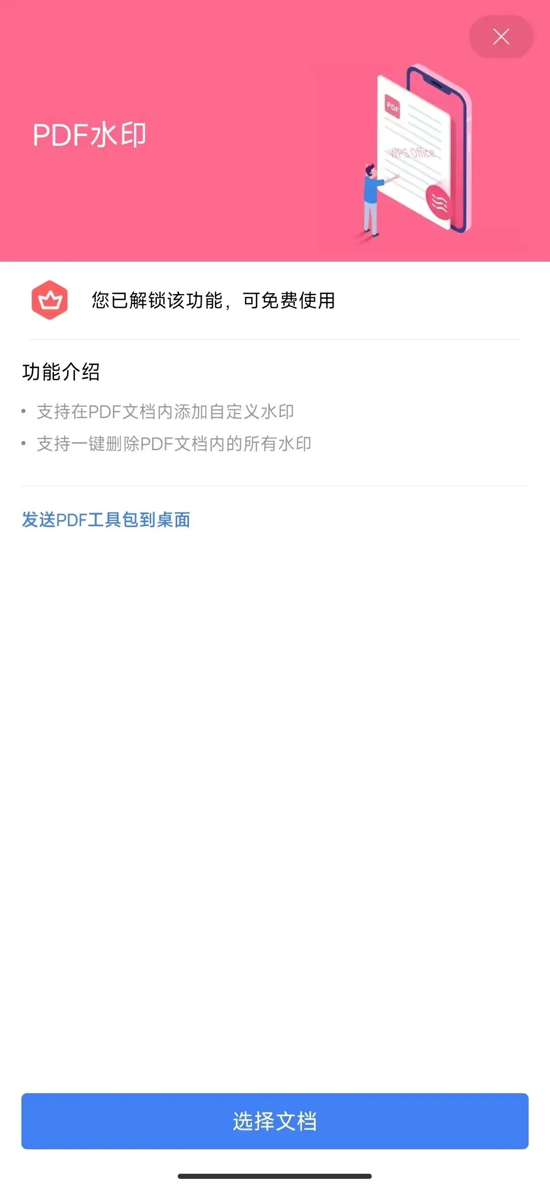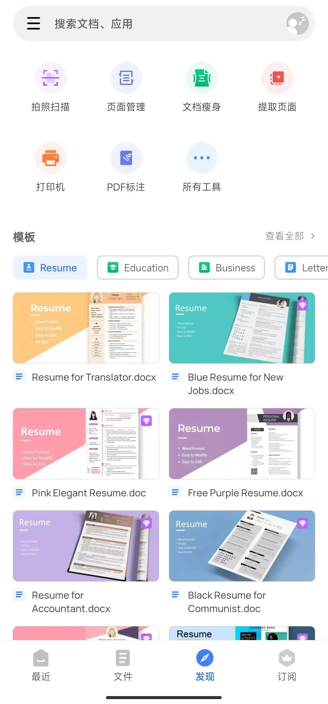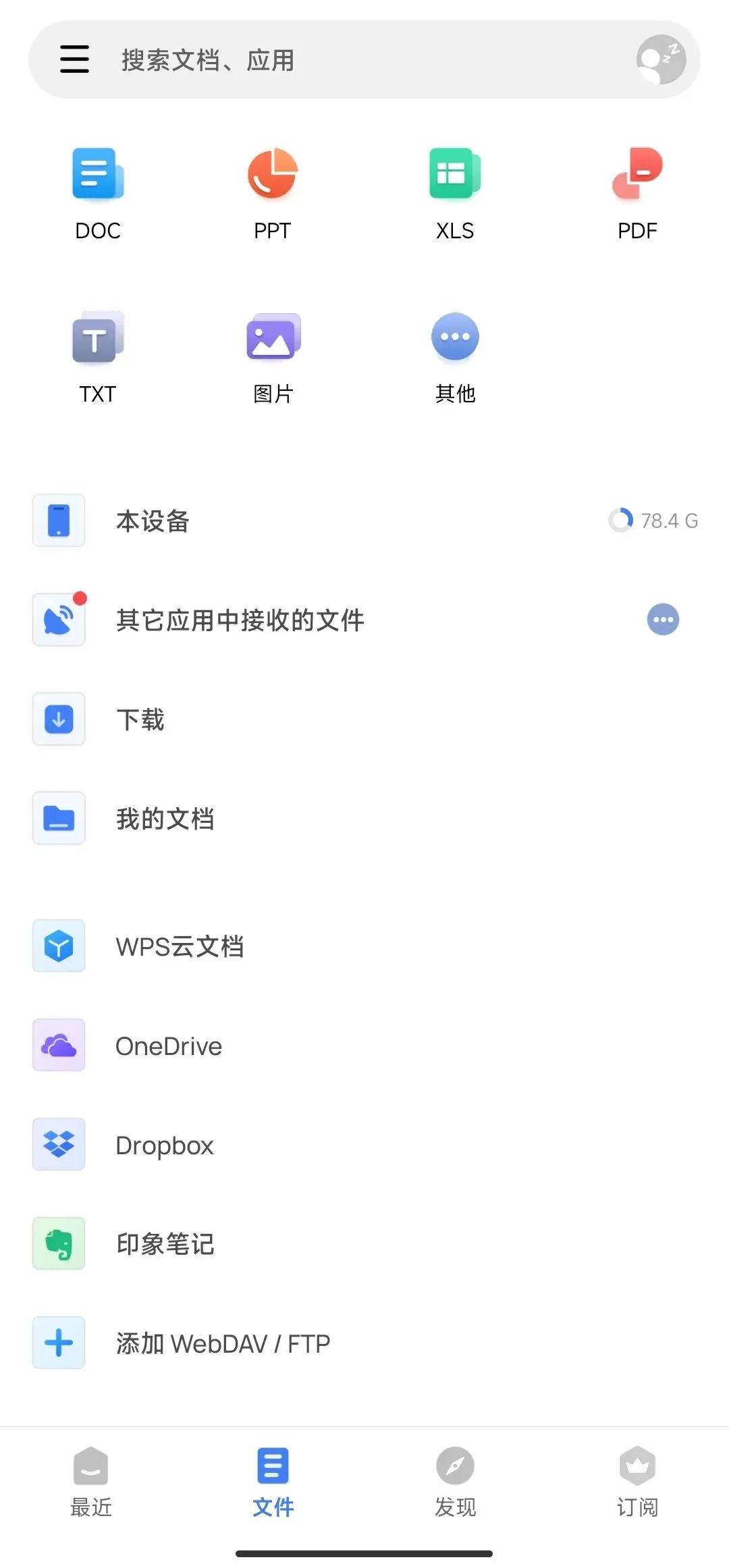 支持打开DOC、PPT、XLS、PDF、TXT等等格式的文件,登录后支持WPS云文档。