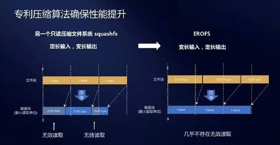 该文件系统能够为只读文件提供比其他只读 Linux 文件系统实现更好的性能以及存储/压缩。华为在其智能手机中使用 EROFS 超级文件系统,通过专利压缩算法提升整体性能。