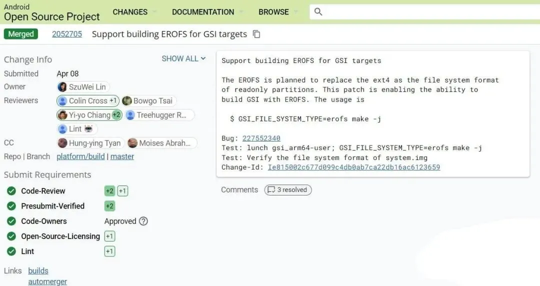 上个月的 AOSP 补丁增加了对使用 EROFS 构建 GSI 的支持,称“EROFS 计划取代…… EXT4 作为只读分区的文件系统格式。”