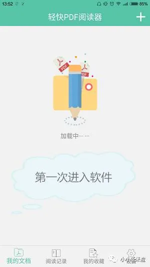 2、下载之后将其安装在手机上,双击运行软件,在右上角“+”中添加pdf文件进行操作。