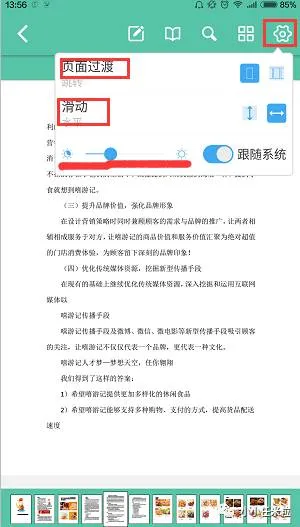5、在阅读页面想要调整阅读效果,可以在“设置”中调整阅读模式和屏幕亮度,还能变换阅读方向以及翻页模式。