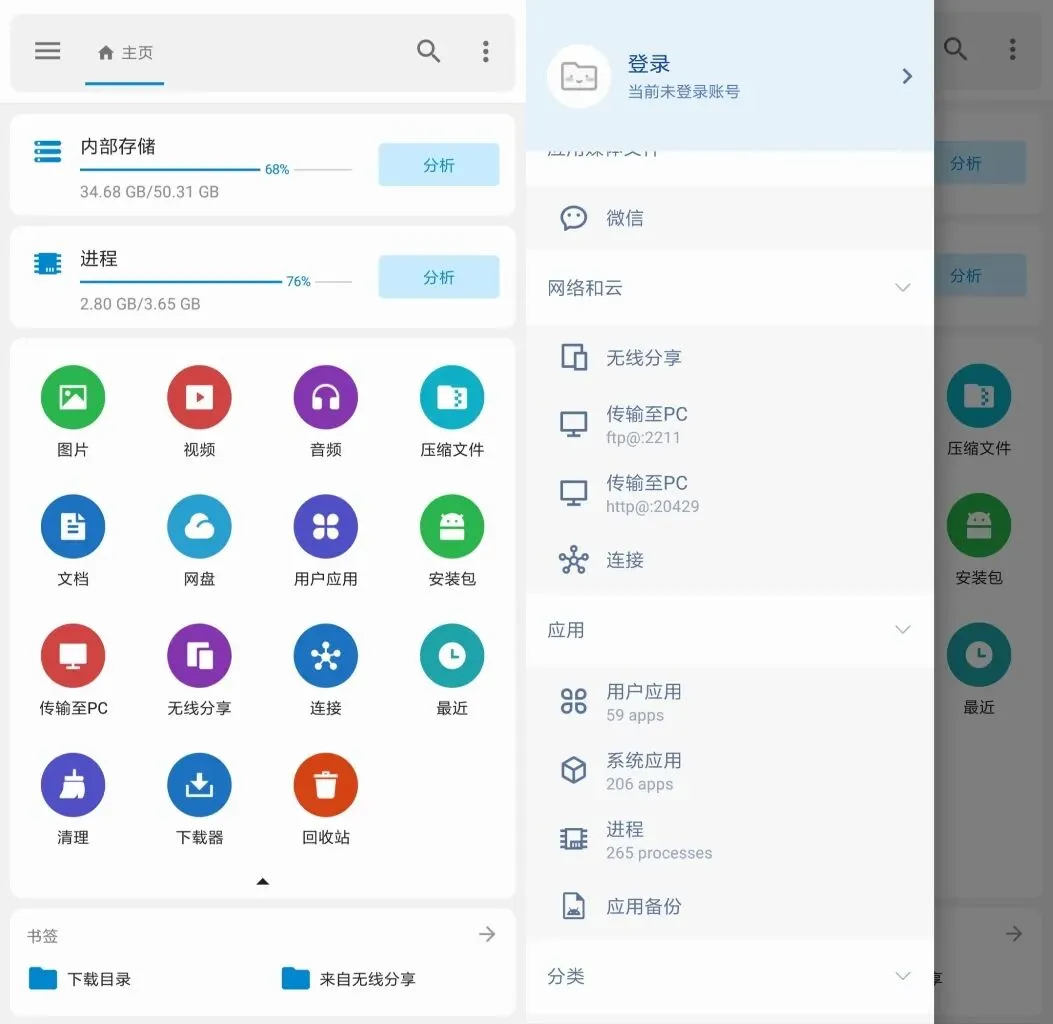 它支持常规的复制、粘贴、剪切、重命名、删除等文件操作,还内置存储分析、垃圾清理、网盘管理、局域网共享、FTP服务器、应用管理、隐藏文件查看等高级功能。