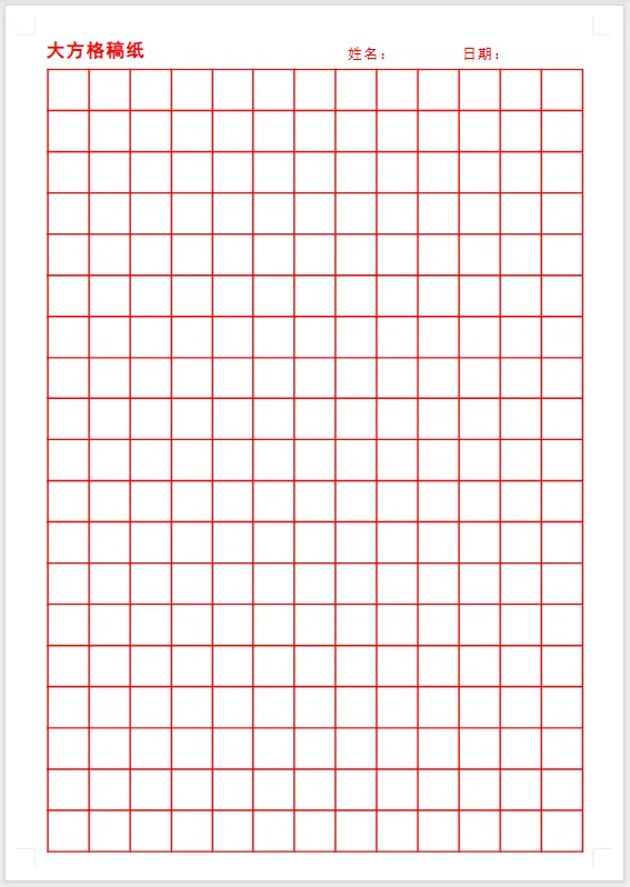 大方格稿纸电子版免费下载(Word版可编辑打印)