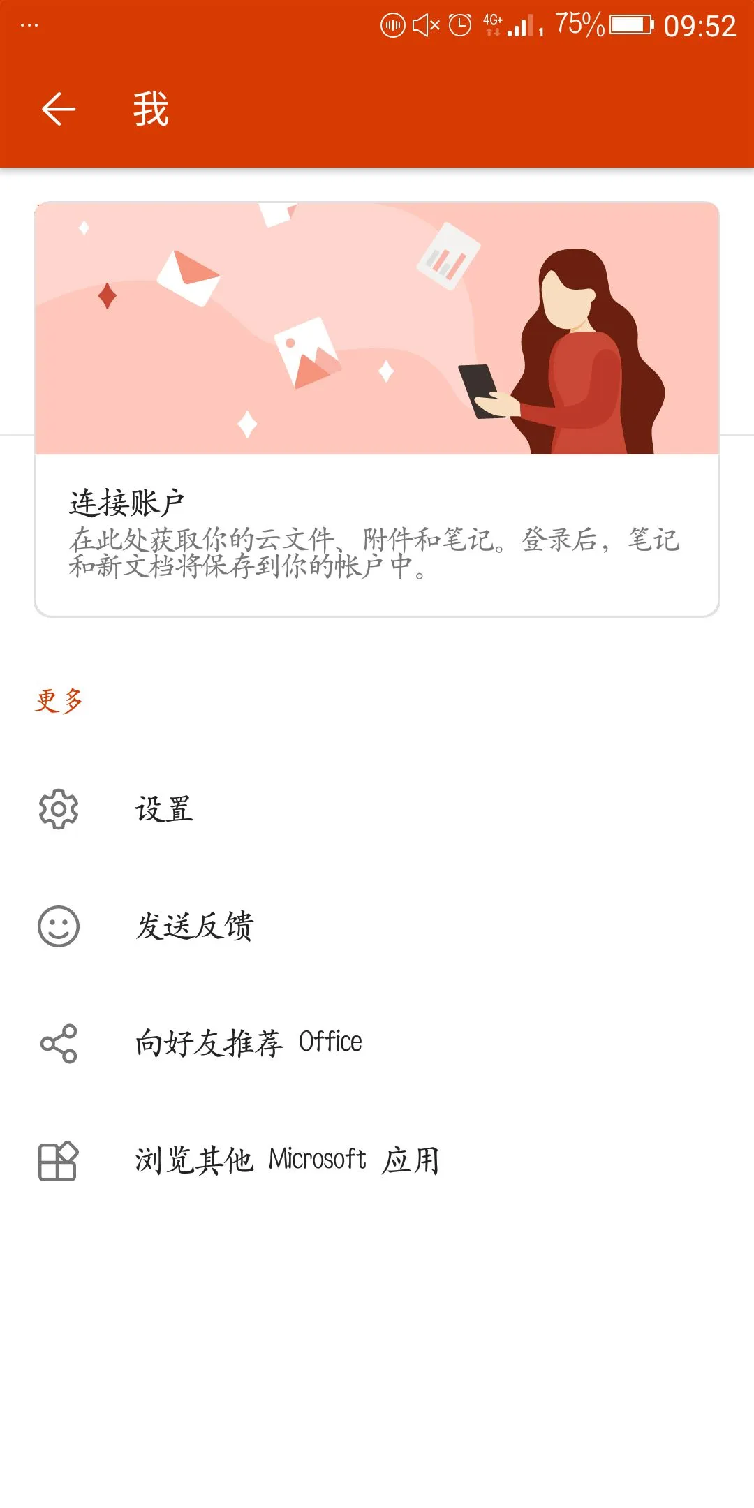而由微软发布的手机Office,启动页面与WPS完全不一样,没有任何的广告,页面也更加简洁。