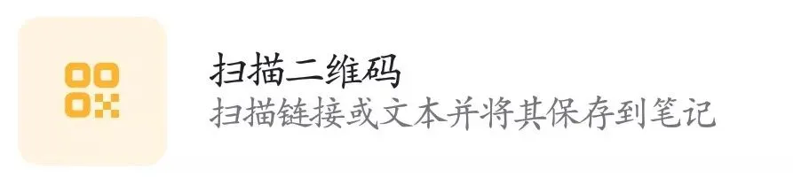 当然在这里还有一个功能要介绍的就是直接扫描二维码就能够保存为笔记了,非常实用