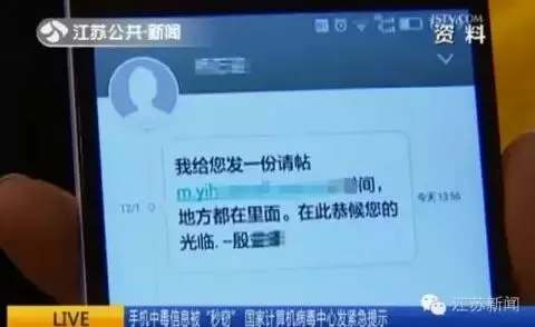 该病毒以短信形式发送,内容包括接受者和发送者的准备姓名,有的称重要文件,有的称“有几张照片你看看”。天津市民陈先生,就是收到孩子幼儿园老师的信息,说有一份重要文件需要看一下,因为和幼儿园老师经常有短信往来,也没怀疑就点开了。随后让其安装一个文件。