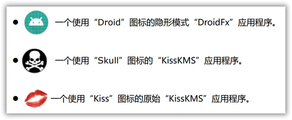 这里我选择了“kisskms.punisher.2.8.3-api14+.apk”,安装完毕后,手机上显示的图标为: