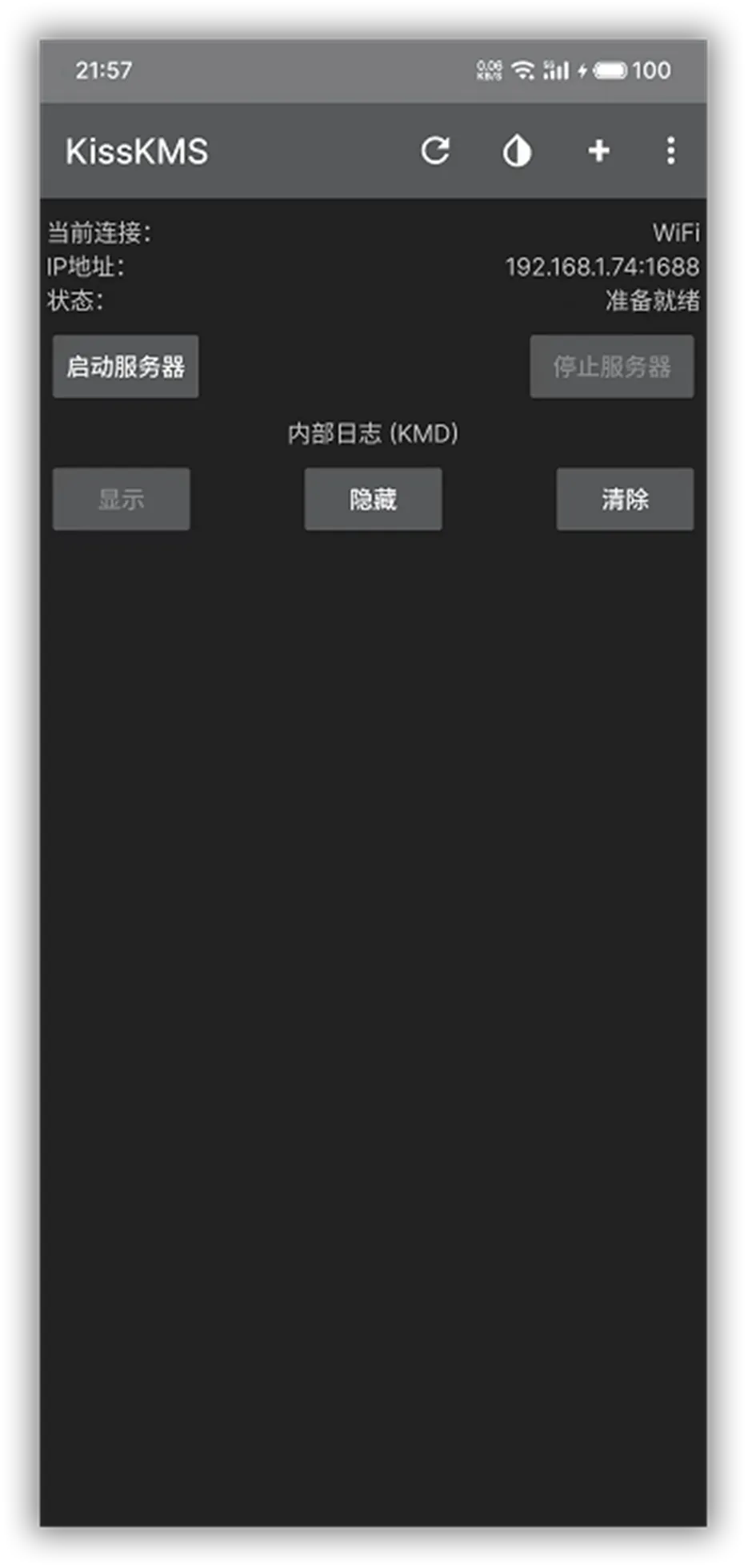 也就是说,可以把自己的安卓手机打造成一款KMS伺服器。什么时候想用了,打开APP,启动服务器,就相当于一台移动的KMS伺服器搭建完成了。