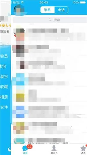 1、登陆手机QQ,向右滑动,调出选项栏;